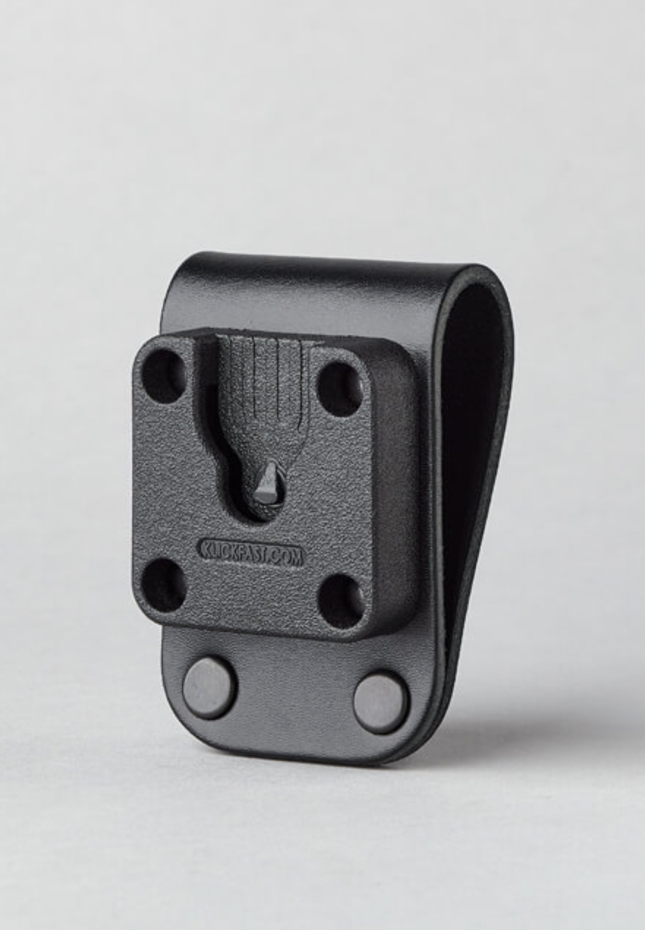 Clip = lederen clip die op de kleding gezet dient te worden.